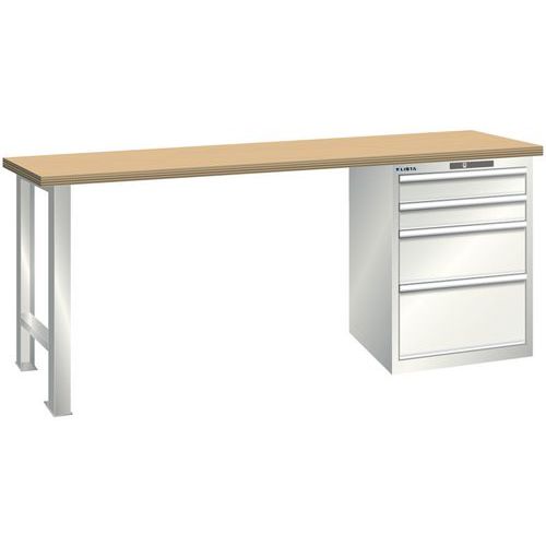 Bancada 27x36E com 4 gavetas com plataformas de bancada extremamente robustas e resistentes. Uma vasta gama de versões à escolha, graças aos diferentes componentes, suportes, materiais e superfícies. Nível ideal de conforto e ergonomia de utilização, graças aos pés da bancada com altura ajustável que permitem uma altura de trabalho ergonómica e um espaço ideal para as pernas para as atividades realizadas na posição sentada, e ao nosso sistema de estruturas modulares. Permite a adaptação a novos ambientes de trabalho em qualquer altura, oferecendo uma elevada flexibilidade na montagem e transformação de todos os componentes do sistema modular. Mobilidade total com os equipamentos com rodízios em borracha ou nylon, para uma utilização móvel em diferentes postos de trabalho.