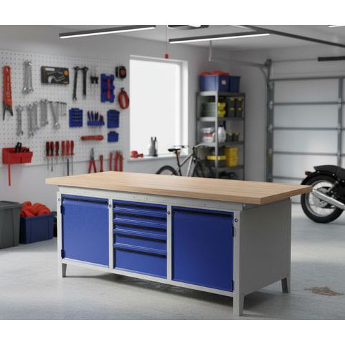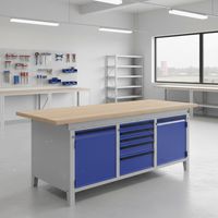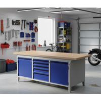 Bancada de trabalho com uma capacidade de carga excecional até 1000 kg para as operações de montagem mais pesadas. Tampo em contraplacado de faia de elevada resistência mecânica para máxima durabilidade e resistência. A largura de trabalho confortável de 200 cm oferece um generoso espaço de trabalho. Arrumação integrada e organizada para acesso fácil a ferramentas e componentes. Design robusto e estável para uma utilização intensiva em total segurança. Estão disponíveis duas configurações: dois blocos de arrumação independentes ou um único bloco combinado.