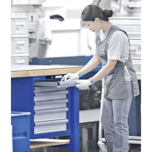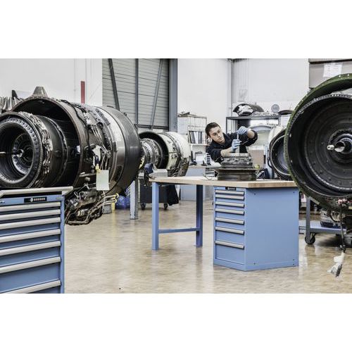 Estabilidade máxima - bancada de trabalho com uma capacidade de carga até 3 t, prateleiras de trabalho extremamente robustas e duráveis Grande variedade de versões graças a diferentes componentes, suportes, materiais e superfícies Ótimo conforto operacional e ergonomia - graças às pernas de bancada reguláveis em altura para uma altura de trabalho ergonómica e espaço ótimo para as pernas para o trabalho sentado, bem como o nosso sistema de construção modular Adaptável em qualquer altura a novos ambientes de trabalho Alta flexibilidade na montagem e conversão de todos os componentes do sistema modular Mobilidade total com rodízios de borracha ou nylon para utilização móvel em diferentes locais de trabalho Montagem rápida e fácil graças às bancadas pré-perfuradas com porcas de parafusos (pré-montadas) para fixação de todos os suportes e armários de gavetas