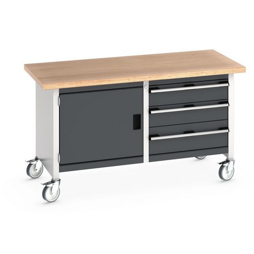 Bancada de trabalho monobloco com armário e gavetas, Altura total: 840 mm, Nº de gavetas: 3 Bancada de trabalho monobloco com armário e gavetas, Altura total: 840 mm, Nº de gavetas: 3