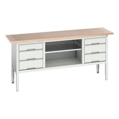 Bancada de trabalho monobloco Verso, Carga máx.: 800 kg, Altura total: 930 mm, Largura total: 2000 mm Bancada de trabalho monobloco Verso, Carga máx.: 800 kg, Altura total: 930 mm, Largura total: 2000 mm