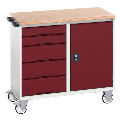 Bancada de trabalho móvel inferior com portas e gavetas, Altura total: 980 mm, Nº de gavetas: 5 Bancada de trabalho móvel inferior com portas e gavetas, Altura total: 980 mm, Nº de gavetas: 5