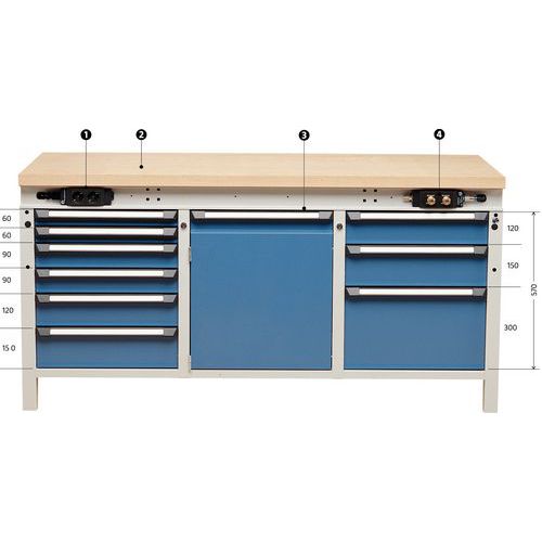 | Altura Gaveta | 2 x 60, 2 x 90, 2 x 120, 2 x 150, 1 x 300 mm |