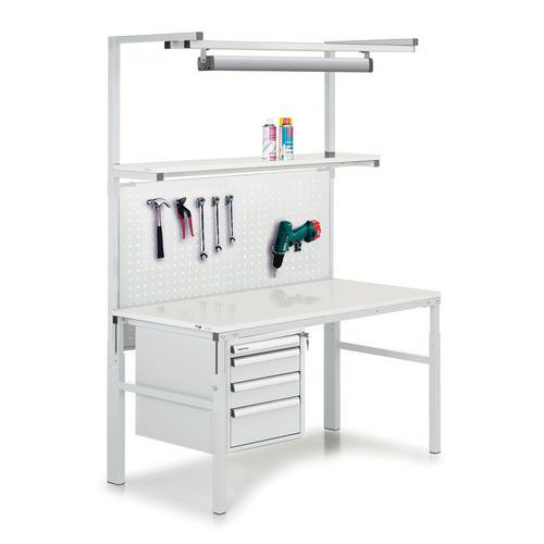 | Nome do artigo | Bancada TPH, Carga máx.: 300 kg, Largura: 120 cm, Profundidade: 70 cm, Cores: Cinzento Branco |