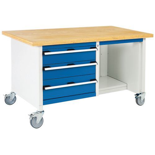 Banco rolante monobloco cubio, Altura total: 840 mm, Nº de gavetas: 3, Largura total: 1500 mm Banco rolante monobloco cubio, Altura total: 840 mm, Nº de gavetas: 3, Largura total: 1500 mm