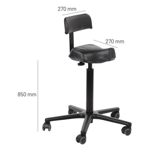 | Nome do artigo | Banco sentado/em pé com encosto, Tipo de pé: Rodízios, Assento material: Vinil, Espaldar: sim |