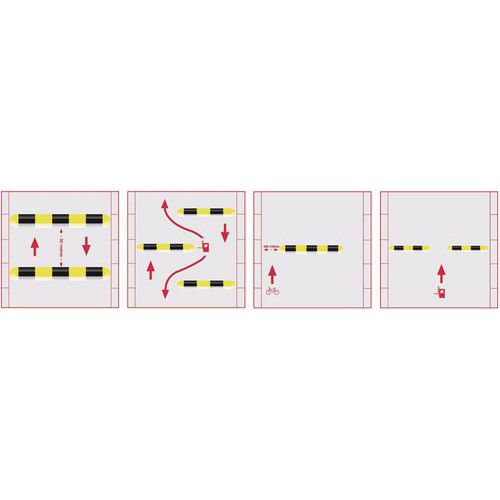 - Excelente visibilidade de dia e de noite devido à alternância de riscas amarelas/pretas e aos refletores integrados.