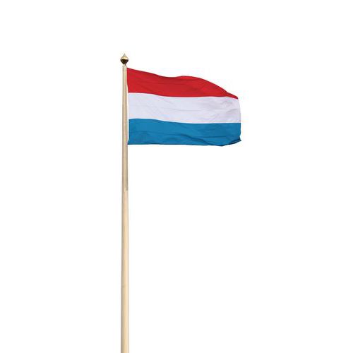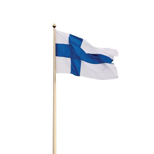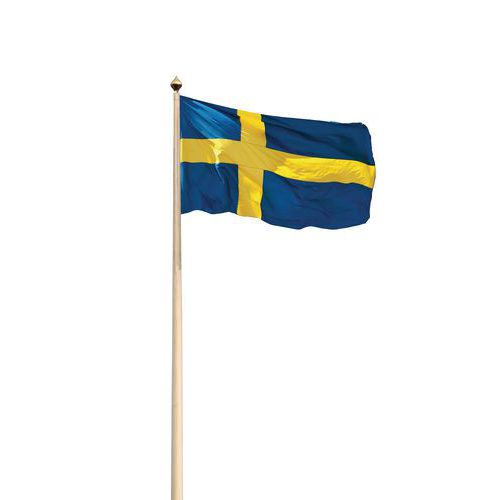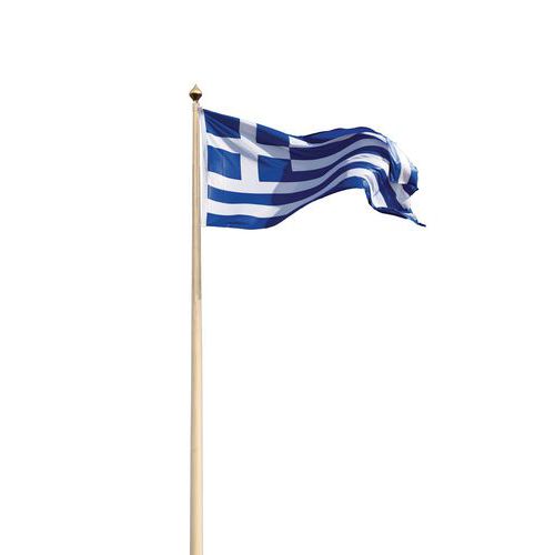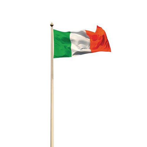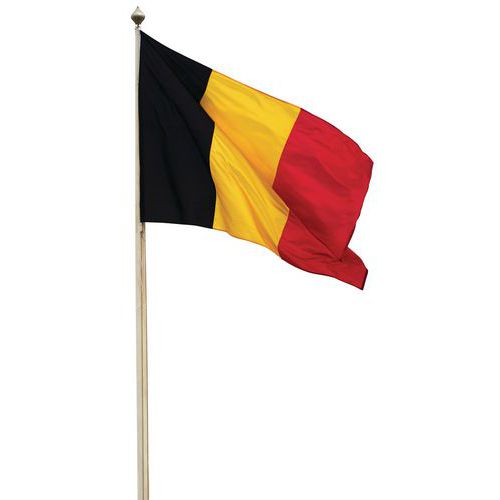 Bandeira de 150x225 cm, impressa na parte frontal com cruzamento na parte posterior em material têxtil de 110 g/m². Correia de reforço com 2 argolas superiores e inferiores.