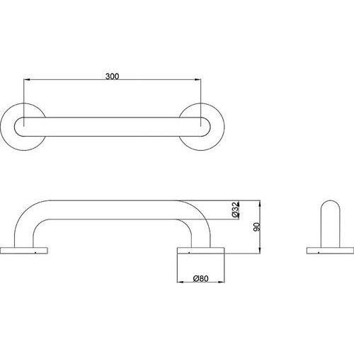 Barra de apoio, Material: Inox, Tipo de fixação: De aparafusar, Comp.: 30 cm, Barra Ø: 32 mm