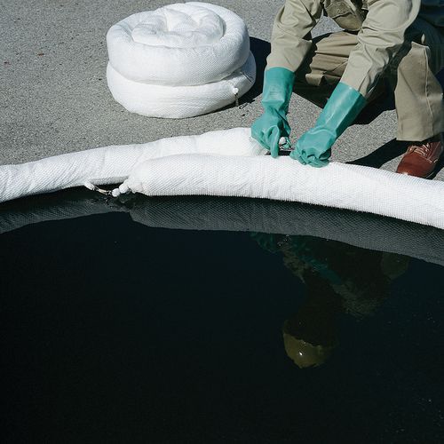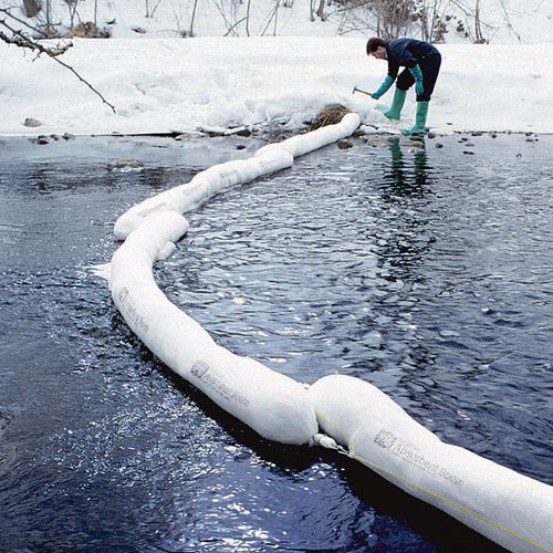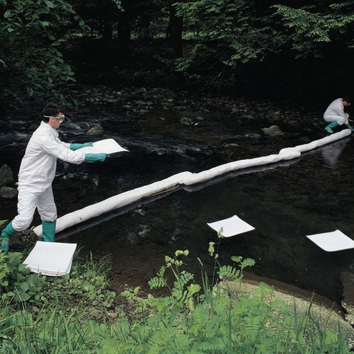 Flutuação da barragem absorvente com plena saturação. Montagem através de fixações em aço para cobrir uma maior superfície. Revestimento reforçado e resistente aos raios UV. Sinalização imediata das descargas graças à cor branca.