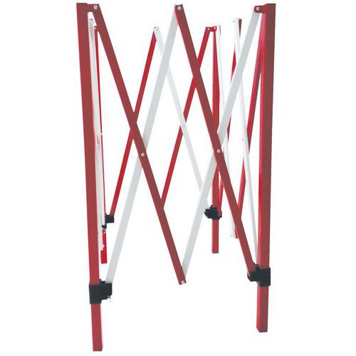 Barreira de estaleiro extensível com barras articuladas por rebites. Ocupa muito pouco espaço quando dobrada. Indicada para utilização no interior e exterior.