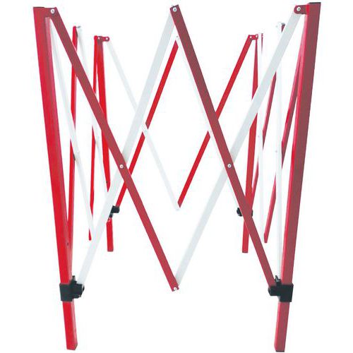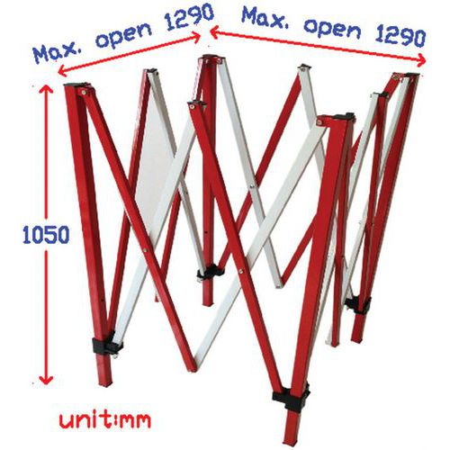 Barreira de estaleiro extensível com barras articuladas por rebites. Ocupa muito pouco espaço quando dobrada. Indicada para utilização no interior e exterior.