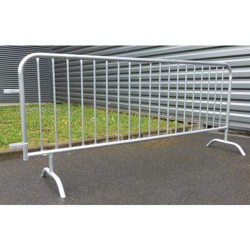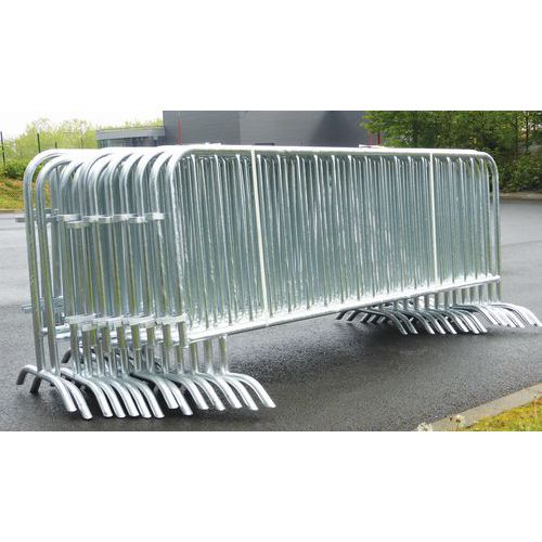 Possibilidade de colocar em ângulo através dos pés e dos ganchos de fixação. Barreiras desniveladas: fixação sólida. Barreiras com 19 barras: conforme às normas da polícia francesa