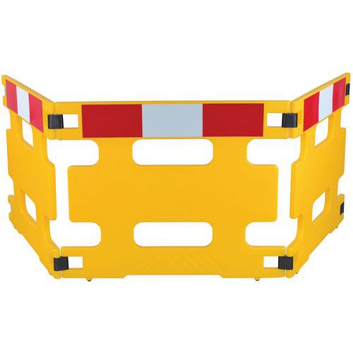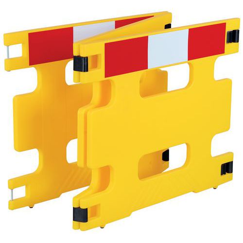 Barreira de segurança dobrável para bloqueio de obstáculos de forma temporária e rápida. Inclui faixas refletoras em vermelho/branco para proporcionar elevada visibilidade. Extensível: cada barreira integra uniões que permitem uni-las entre si. Fácil armazenamento e transporte graças ao seu peso reduzido. Autónomo, não requer pés.