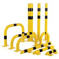 - Poste de proteção em aço robusto para proteger os equipamentos ou máquinas contra eventuais pancadas de equipamentos de movimentação. Boa visibilidade graças às suas duas cores amarelo/preto. Indicado para utilização tanto em espaços interiores como exteriores. Fixação ao solo graças às placas de 4 orifícios de 12,5 mm de Ø. Com certificação TÜV.