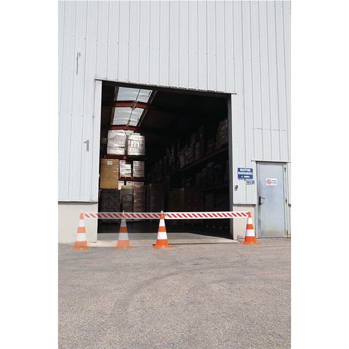 | Nome do artigo | Barreira telescópica, Cores: Vermelho, Altura: 150 mm, Comp.: 1.8 m, Materiais: PVC |