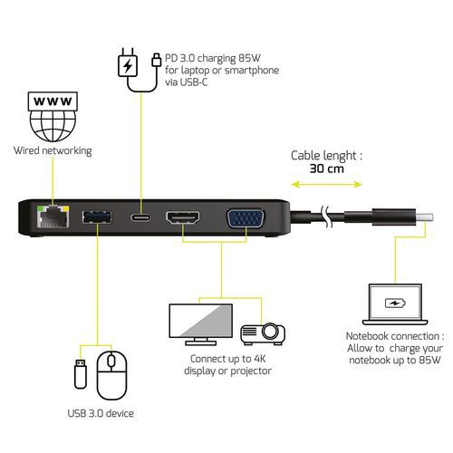 | Nome do artigo | Base de ancoragem de viagem USB-C – Port connect, Comp.: 12.3 cm, Cores: Preto, Utilizáveis no exterior: sim |