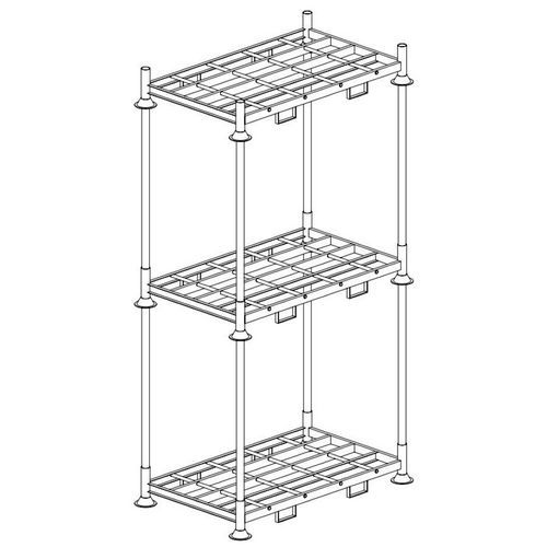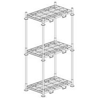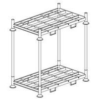 Importante: a estante Manurack é constituída por uma plataforma com 4 pés. Para criar uma estrutura de vários níveis, mostra-se adequado encomendar tantas bases Manurack I quanto os níveis pretendidos, bem como 4 montantes tubulares Manurack (suportes). Tenha em conta que, quanto mais comprido o tubo, mais reduzidos os níveis de empilhamento autorizados: Manurack simples, carga de 1500 kg por nível: Tubos – 1050 mm – altura útil sob o recipiente: 870 mm: Empilhamento 3/1, Tubos – 1680 mm – altura útil sob o recipiente: 1500 mm: Empilhamento 3/1, Tubos – 2100 mm – altura útil sob o recipiente: 1920 mm: Empilhamento 1/1, Manurack duplo I, carga 2000 kg por prateleira: Tubos – 1050 mm – altura útil sob o recipiente: 870 mm: Empilhamento 2/1, Tubos – 1680 mm – altura útil sob o recipiente: 1500 mm: Empilhamento 2/1, Tubos – 2100 mm – altura útil sob o recipiente: 1920 mm: Empilhamento 1/1. Nota: o modelo duplo está equipado com entradas para garfos de empilhador.