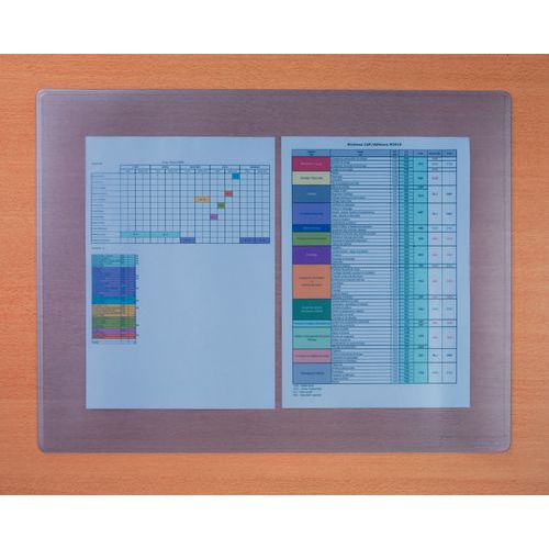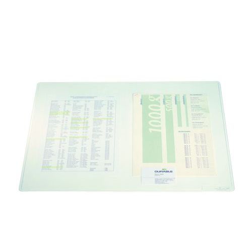 | Nome do artigo | Base de secretária transparente DURAGLAS, Material: PVC, Cores: Transparente, Comp.: 650 mm, Largura: 500 mm |