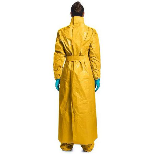 Bata de manga comprida Tychem 2000 C com cobertura das pernas até aos gémeos.