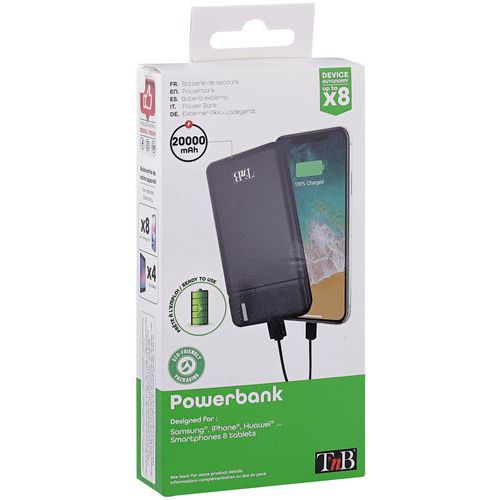 | Nome do artigo | Bateria auxiliar móvel 2 USB – 20 000 mAh – T'nB, Cap. (eléctrica): 20000 mAh, Cores: Preto, Largura: 7.5 cm |
