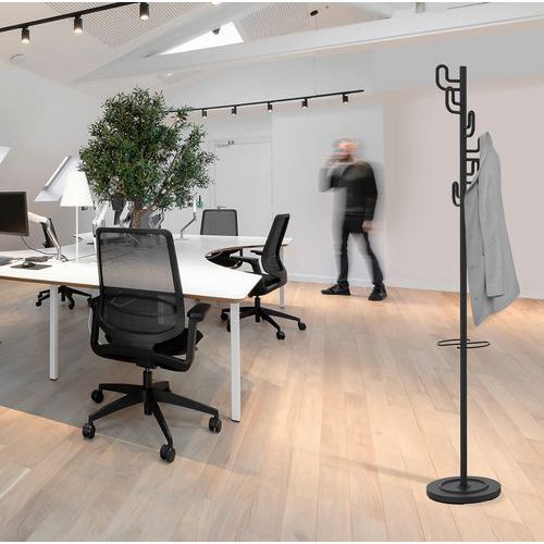 Bengaleiro California Unilux, design ergonómico. Com ganchos de estilo orgânico, o bengaleiro CALIFORNIA cria uma atmosfera acolhedora e torna-se um elemento decorativo por si só. Está equipado com um suporte para guarda-chuvas regulável em altura e um escorredor, o que é muito prático para guardar guarda-chuvas molhados sem sujar o chão. Graças à base lastrada, o bengaleiro proporciona maior estabilidade, evitando o risco de queda mesmo quando está carregado. Montagem em apenas quatro minutos sem necessidade de ferramentas, muito prático de instalar.