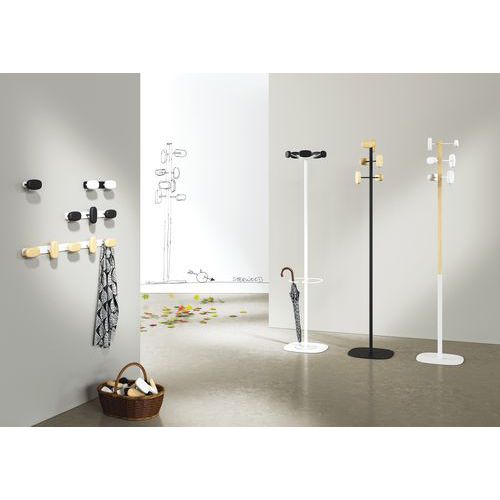 Bengaleiro em espiga Sherwood bimaterial, elegante e discreto. Design contemporâneo. 6 ganchos orientáveis para proporcionar mais comodidade. Grande resistência aos choques. Ecológico.