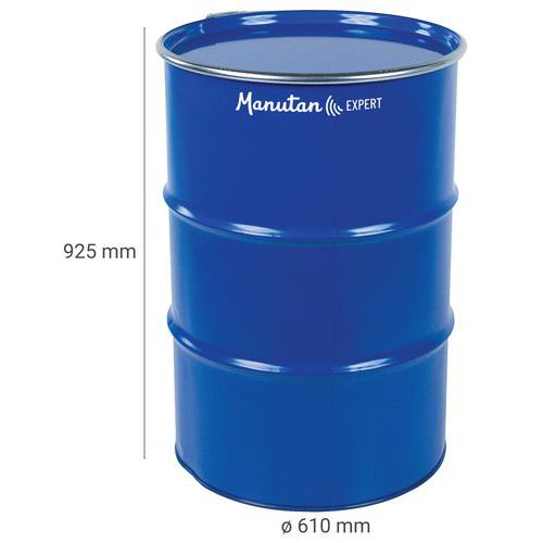 | Nome do artigo | Bidão de 216 L recuperado de abertura total – Manutan Expert, Capacidade: 216 L, Ø total: 625 mm |