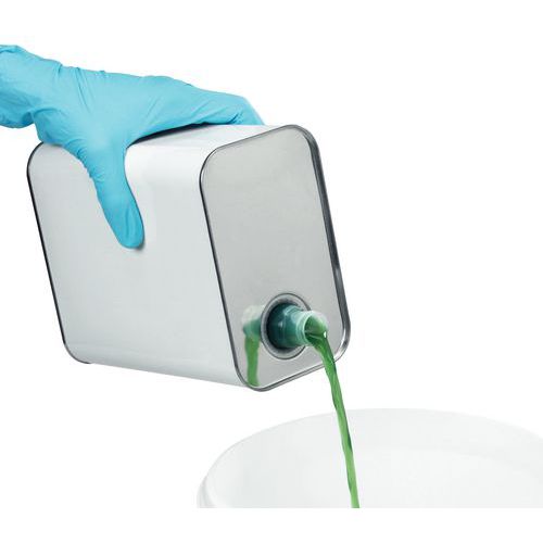 Conteúdo em segurança graças à tampa de rosca inviolável. Ferro eletrolítico, exterior de cor branca, interior bruto. Tampão utilizável no bico de descarga (puxando e desenroscando). Fabricado na UE