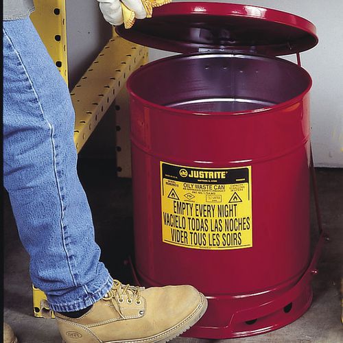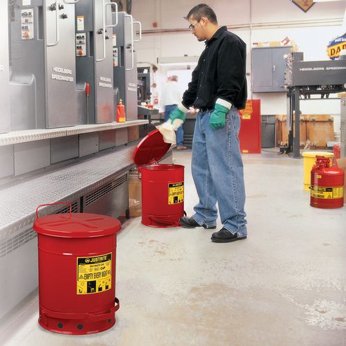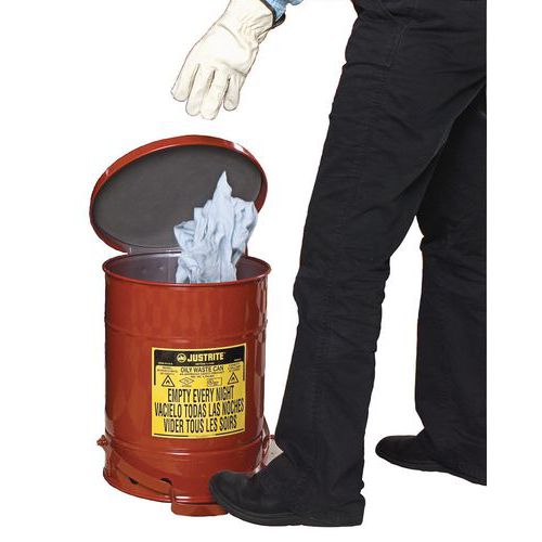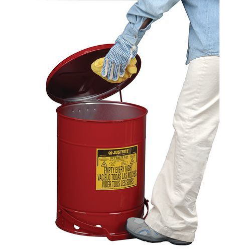 | Nome do artigo | Bidão para resíduos oleosos em vermelho 80 L – Justrite, Capacidade: 80 L, Abertura: Com pedal |