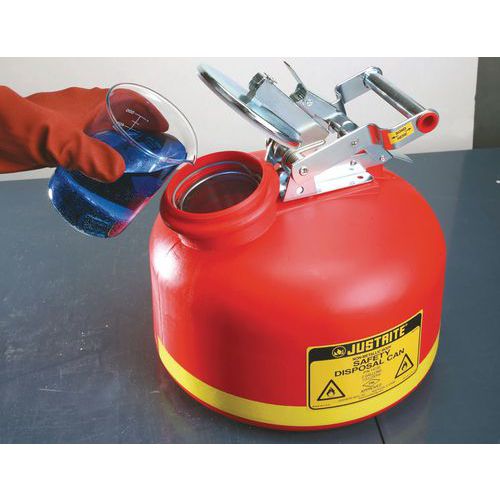 | Nome do artigo | Bidões de segurança, Cores: Vermelho, Capacidade: 8 L, Altura total: 375 mm, Ø total: 305 mm, Peso: 3 kg |