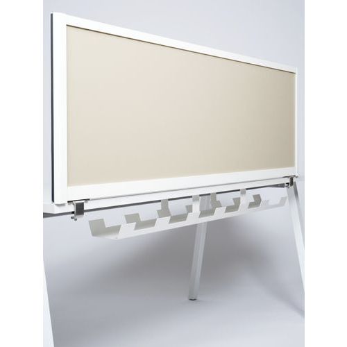- Estrutura sólida em alumínio com painel em aglomerado revestido de tecido colorido.