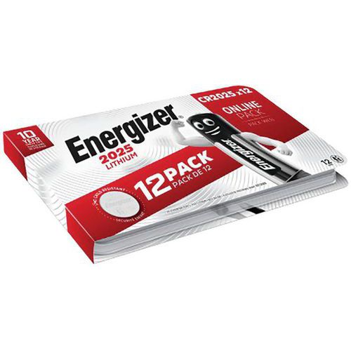 Blister de 12 pilhas tipo botão – lítio – Energizer, Tipo de pilha: CR2025, N.º de pilhas: 12