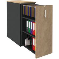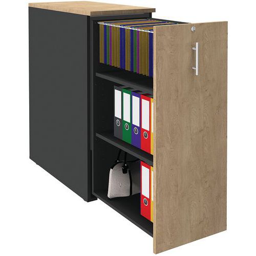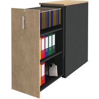 Bloco com estrutura ABS em melamina de elevada resistência. Abertura corrediça para a frente. Organizador para pastas suspensas 2 rodízios para a abertura da sua gaveta. Prateleira superior com espessura de 25 mm. Classificação de resistência ao fogo M3. Compatível com o obturador e a caixa para canetas Tower. Produto entregue montado.