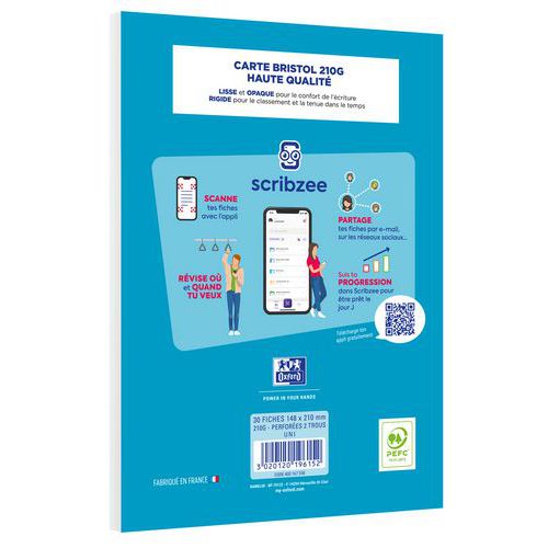 | Nome do artigo | Bloco Bristol de 148x210 de 30 fichas perfuradas lisas, branco – Oxford, Gramagem: 210 g/m² |