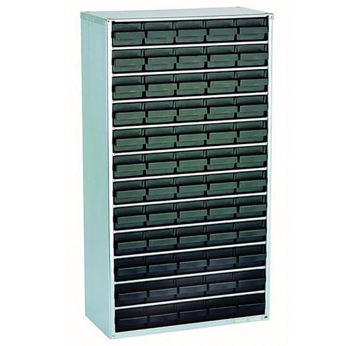 Bloco de compartimentos antiestático com gavetas que permite organizar os objetos facilmente. É possível separar todas as gavetas graças às divisórias. Fabricado na UE Carga máx. (kg) : 60