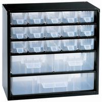 Bloco de compartimentos em metal com gavetas de plástico transparentes. Ideal para guardar, ordenar e organizar peças pequenas. Armazene os seus objetos de forma clara e protegidos de poeiras.