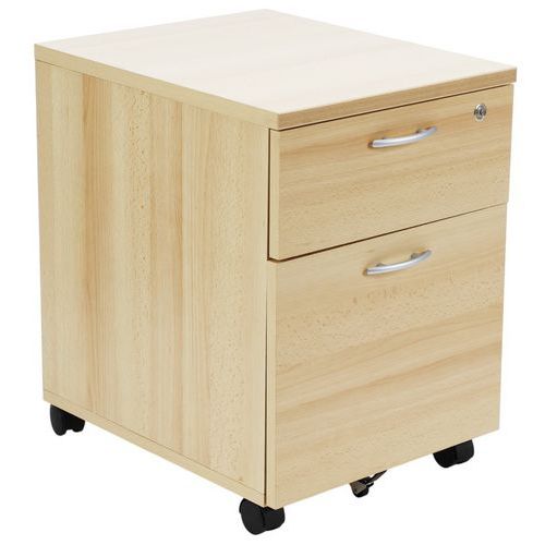 Bloco com gaveta em painel de partículas de superfície melaminada. Móvel equipado com rodízios à prova de basculamento. Bloqueio com fechadura com canhão (1 só gaveta). Um programa eficaz e robusto com uma instalação simples