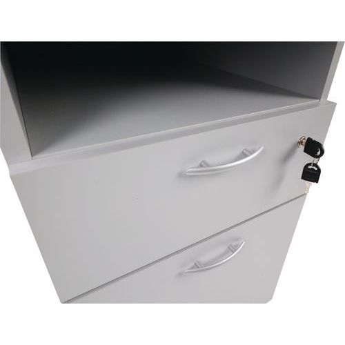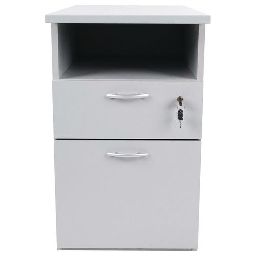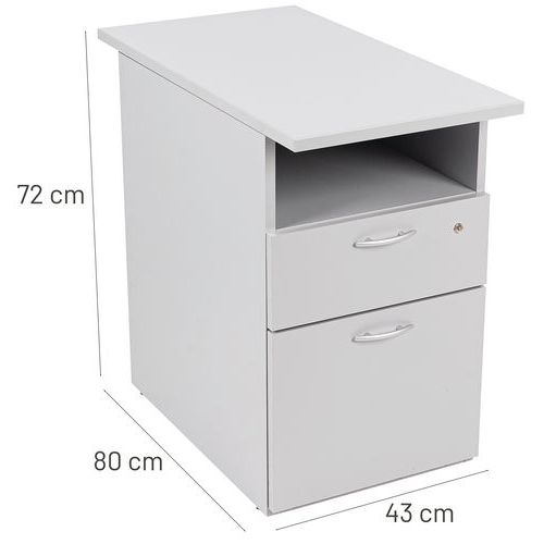 Bloco com altura de secretária e pegas em alumínio. Equipado com uma fechadura numa só gaveta. Espaço de arrumação adicional sob o tampo superior. Os seus documentos estão sempre ao seu alcance