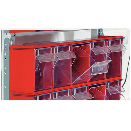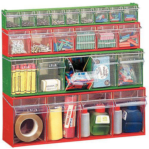 Para a arrumação do seu material pequeno. Com caixas basculantes e amovíveis transparentes. Os blocos-gavetas combinam-se facilmente por encaixe. Encomende em separado uma vareta de segurança para evitar a queda das caixas.