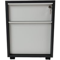 Bloco-gavetas móvel Misao em melamina com cantos de 1 mm. 2 gavetas em painel em melamina, incluindo uma para pastas suspensas. As alturas úteis das gavetas são de 14,5 cm e 27,7 cm, para uma largura útil de 32,5 cm. Gaveta para pastas suspensas adequada para pastas A4 e Foolscap. Bloqueio centralizado sem sistema antibasculamento.