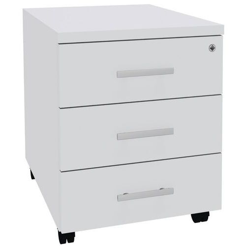 Bloco de gavetas móvel com 2 gavetas para organizar objetos pessoais ou documentos profissionais. Ideal para espaços de trabalho. Bloco-gavetas móvel com fechadura centralizada com chave. Deslocação fácil graças aos 4 rodízios. Entregue com 2 chaves.