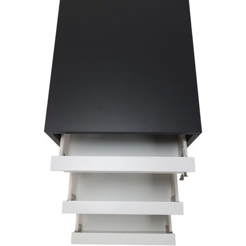 Bloco-gavetas móvel Misao em melamina com cantos de 1 mm. 3 gavetas em painel em melamina. Gavetas com 8,6 cm de altura e 50 cm de largura. Bloqueio centralizado sem sistema antibasculamento. Pega em perfil de alumínio anodizado. Carga máxima de cada gaveta: 25 kg. Rodízios giratórios com 37 mm de diâmetro. Fabricado na UE Garantia do cliente : 10 anos