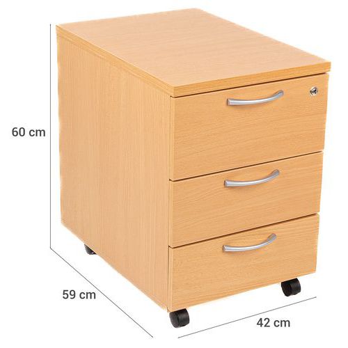 | Nome do artigo | Bloco-gavetas móvel – faia, Material: Em melamina, Altura total: 60 cm, Nº de gavetas: 3 |