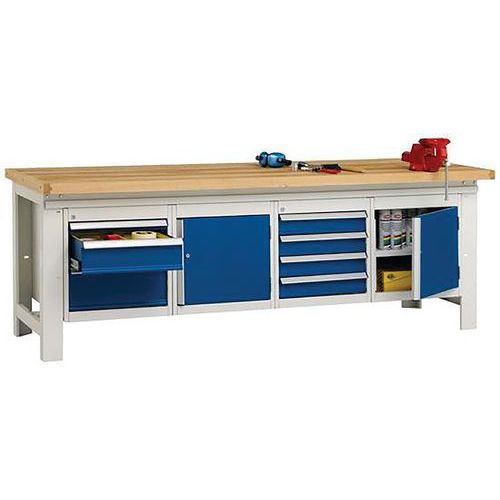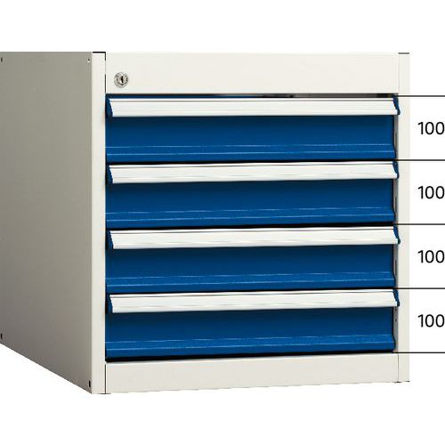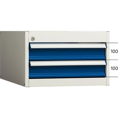 Armários com gavetas ou porta de fácil montagem em estrutura de bancada. Gavetas com calhas telescópicas 100% extraíveis. Segurança máxima com sistema de bloqueio centralizado. Bloco de gavetas e bloco de porta com pegas em alumínio e porta-etiquetas. Fabricado na UE Garantia do cliente : 3 anos