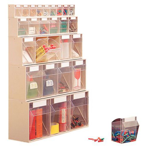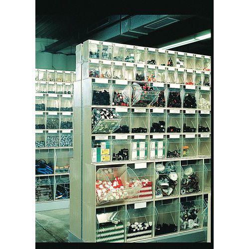 - Arrume os seus artigos de maneira clara com um sistema de estantes com caixas inclináveis.
