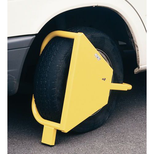 Bloqueia eficazmente qualquer manobra do veículo. Impede o desaparafusamento da roda. Dispositivo antirroubo protegido através de fechadura de alta segurança. Muito fácil de desmontar.