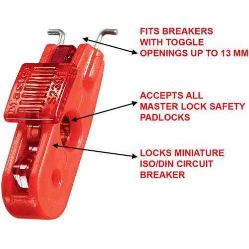 | Nome do artigo | Bloqueio de disjuntor n.º 2391, Cores: Vermelho, Ø: 13 mm, Material: Elastômero termoplástico (TPE) |
