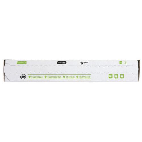 | Nome do artigo | Bobinas para talões de cartões bancários com 1 dobragem térmica 55g/m2 |