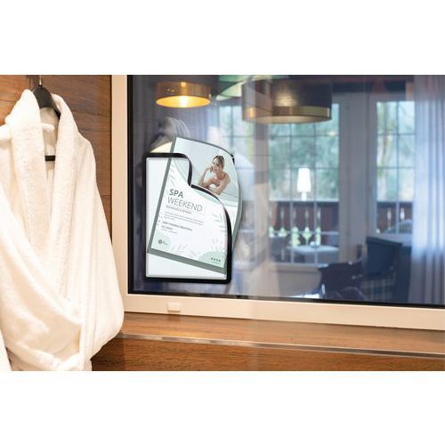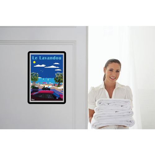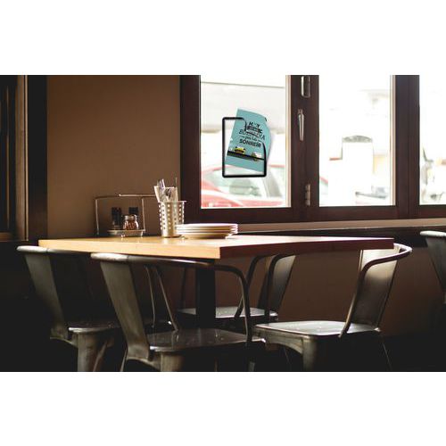Bolsa para quadro adesivo com impressão dupla face e design pontilhado. Fecho com 3 fitas adesivas: retenção perfeita do documento. Afixação dupla face em vidro, graças ao quadro frente e verso. Utilização com dupla orientação: vertical ou horizontal. Bolsa específica para grandes formatos. Fabricado na UE